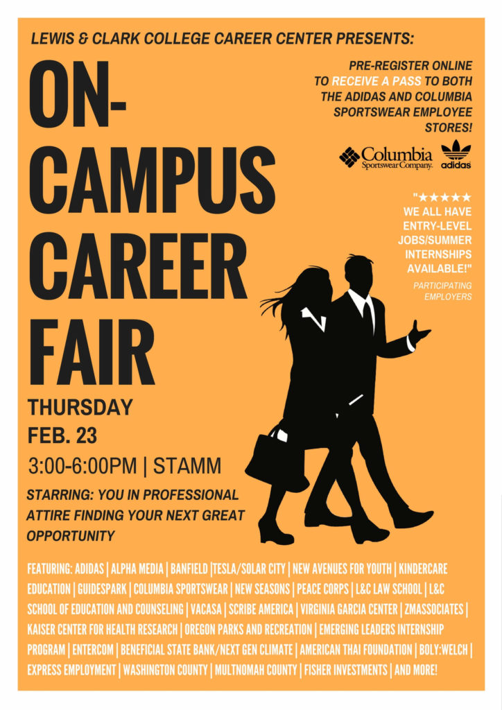 Those who pre-register online will be given a pass to both the adidas and Columbia employee stores. Students are encouraged to submit their resume before February 15. All participating employers have jobs and/or summer internships available. This event provides an opportunity for students to network and work towards their next job or internship.