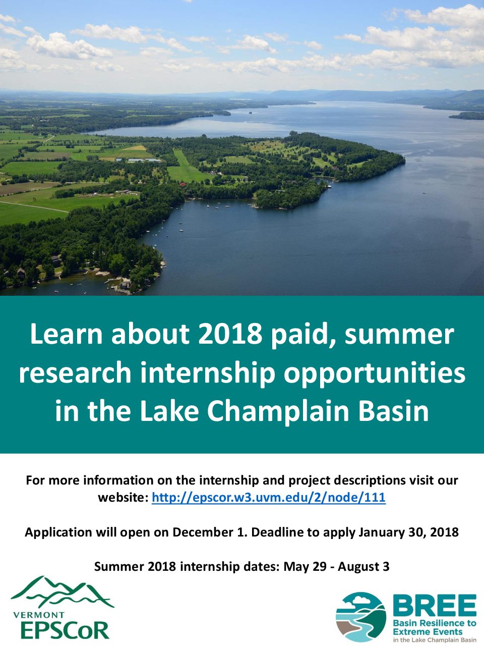 Join us to work on resilience to extreme weather events in the beautiful lake champlain basin. Earn $5,000 for your work on a paid summer internship for undergraduates conducting research in
