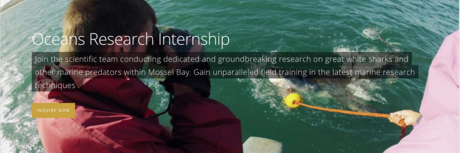 The renowned Oceans Research Internship offers a ‘once-in-a-lifetime’ opportunity for students to gain hands on practical training in conducting research on South Africa’s marine mega-fauna, including the great white shark. Interns join our scientists daily on their research expeditions to conduct groundbreaking research and experiments involving Mossel Bay’s sharks and marine mammals.