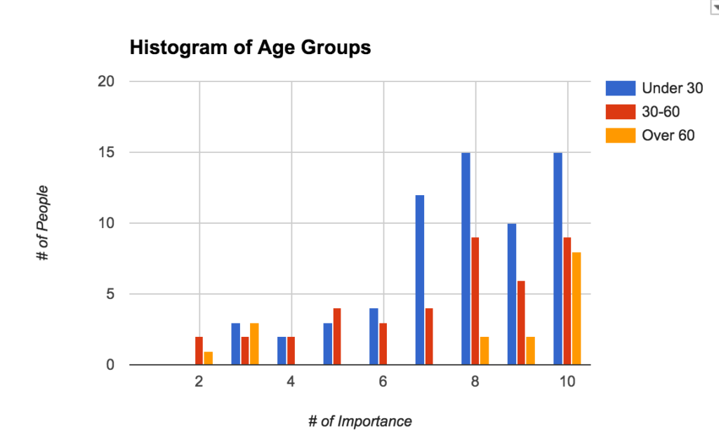 While browsing our data of the PDX area there appeared to be a trend of the participants ages sixty and above that either prioritized their concern for climate change or completely did not. This can stem from the fact that this generation differs from the class’. A different generation can be highlighted by different issues at the time, where climate change contained little importance and the influence of science highly debated. Their drastically divergent opinions could result from many aspects including their demographics, where they lived and other factors which were not accounted for. Many participants under the age of thirty marginalized cohesively around seven to ten in importance, this shows that climate change prioritization is popular amongst the younger generation. This makes sense considering the fact that many young generations have been introduced to the problems climate change creates at a young age. As for thirty to sixty, their opinions spanned the entire range, but had a slight leaning towards higher prioritization. This shows that this mixed age range causes a diverse range of opinions since it includes both the younger and older generations; a sort of crossroads. According to the comments, many people who put climate change as low on priorities considered it just that, other issues at hand are in fact more pressing for their perspective of what is important. For them, issues such as poverty, women’s rights, and other political issues call for much more immediate action when compared to climate change. This is outlined by the book Why We Disagree About Climate Change where Hulme claimed in chapters six and seven that people generally fear issues that they can formally see and interpret for themselves. The actual communication of the effects and risks of climate change can be blurred by politics, dramatic Hollywood produced movies, and the ambiguity of science. Issues such as poverty can readily be seen at the present moment, thus jarring certain emotions and eventually a call to action. The problem with climate change is that it is not visually expressed or felt by the general population, where some comments from our poll reflect that some participants suggest that they cannot feel the temperature rising since winters are still cold. The only transcendence of the climate change is the melting of polar ice caps and the destruction of coral reefs. Although this is common knowledge and is a visual representation of climate change’s impact, the large geographic and personal disconnection of these impacts results in less concern and thus lower prioritization.
