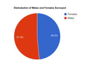 Figure 3: Circle graph comparing the number of females surveyed (50) versus males surveyed (53)