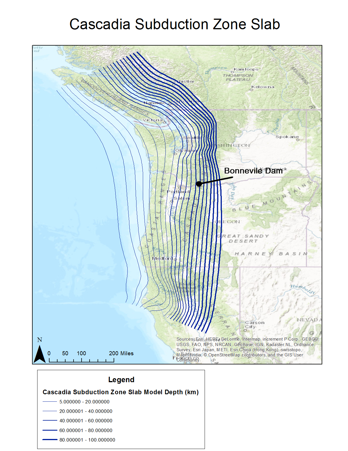 Figure 1: Cascadia Subduction Zone Depth