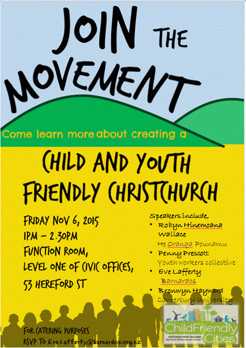 When I asked him what he meant, and he said it didn’t feel safe. I told him about my recent discovery of Child Friendly Christchurch and we started a discussion about possible solutions. His first idea was for the council to ban everyone from wearing leather jackets. Interesting, I said, but perhaps we can think of things the council can do, instead of things other people can’t do. From there we came up with a few things. He mentioned putting phones that kids can use to call their parents on every corner. I thought that was a very valid concern, but instead of building new infrastructure, why not involve local businesses and develop a Child Friendly CHCH sticker that will show children which store owners would be willing to let them use their phones? Another concern was parental supervision at parks. He suggested having parents supervise groups of children under 10 years of age (which was interesting to me considering he is 9 and seems pretty independent) because teenagers can be loud and rambunctious. Finally, he suggested having better gathering spaces like skate parks.