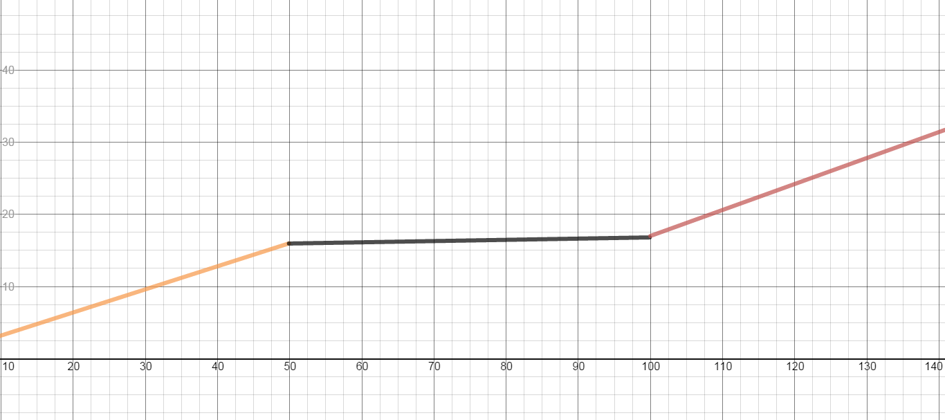 Graphical Representation of the relationship between Communal Garden Interest (Y-axis, not to scale) and Income (X-axis, in $1000/yr)