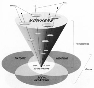 - Perspectives: Ways of knowing (e.g., a place), broadly spanning views from somewhere (local, contextual) to views from nowhere (global, universal).