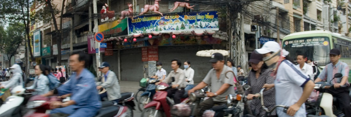 Crossing the street in Ho Chi Minh City August 22, 2014 By Laurel Garrett You will find my post about urbanization, traffic, and motorbikes here! I chose to focus on issues of urban transportation. Here is a gif of a man crossing the street in Ho Chi Minh!