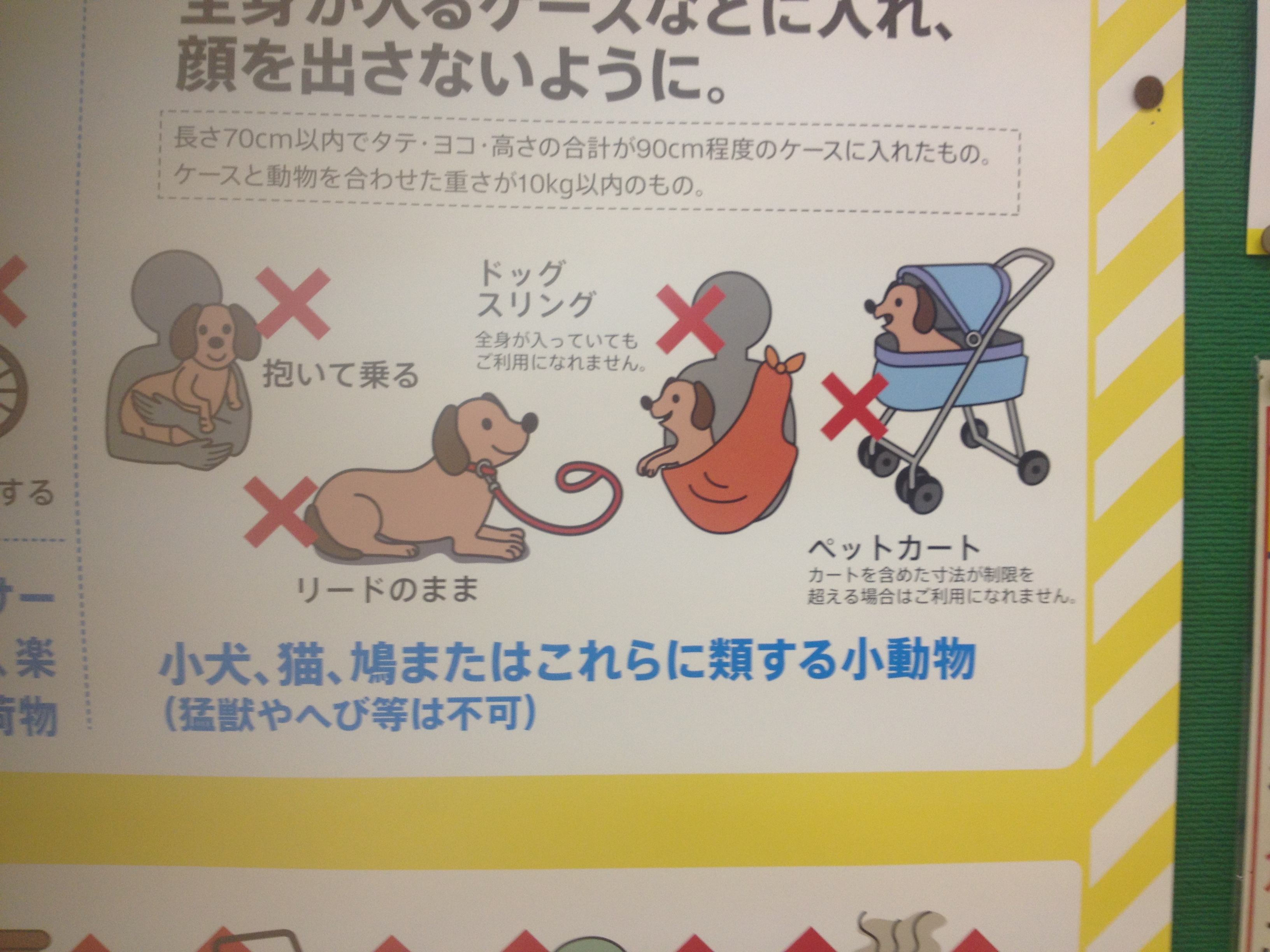 Cartoon dachshund used to show how pets are not allowed on trains unless in crates.