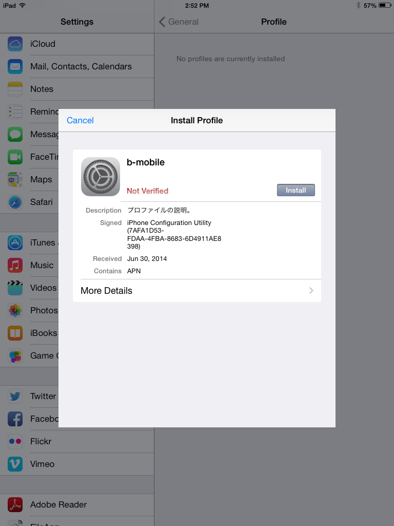 - Access this webpage: http://www.bmobile.ne.jp/devices/bmobile.mobileconfig.