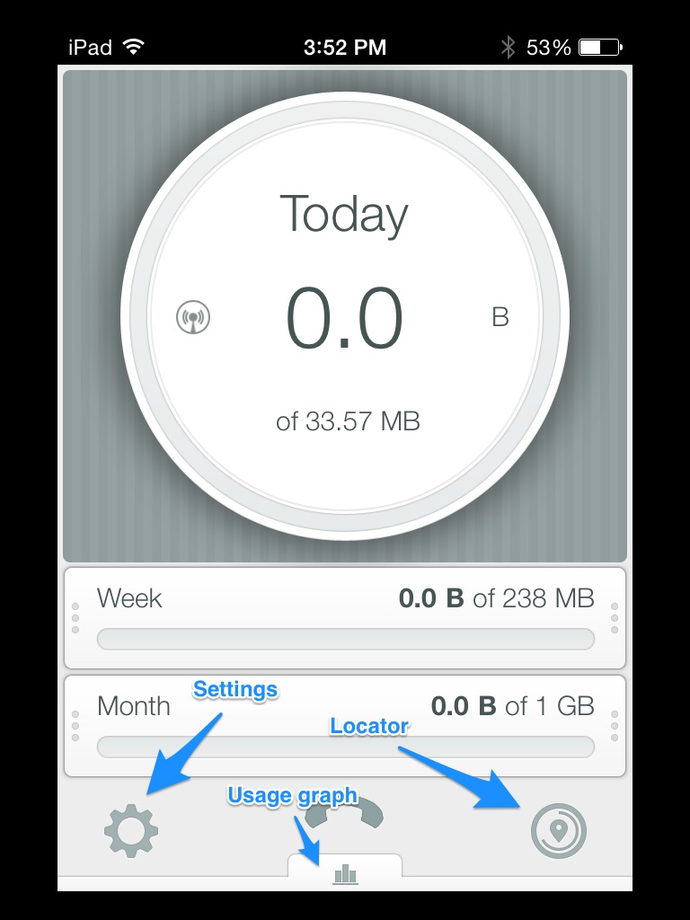 Foreign SIM cards allow limited data use. It is important to keep track of how much data you have used over time so that you do not exceed your monthly allowance. In Fuji, the data allowance for the SIM cards is 1GB per month. After a month has elapsed, a new SIM card needs to be put into the iPad Mini to receive another month of service (totalling 1 GB). It is important that you track your data usage. Try to limit using the iPad Mini’s data-intensive features like downloading media from the web or live streaming maps. To track your data using the iPad Mini’s internal settings, go to Settings > General > Usage > Cellular Usage, or Settings > Cellular Data. You’ll need to total up both sent and received data to get an accurate picture. For a more user-friendly interface to display your data usage, use the DataWiz app located in your “Japan” folder on your home screen (see more detailed info on the app below).