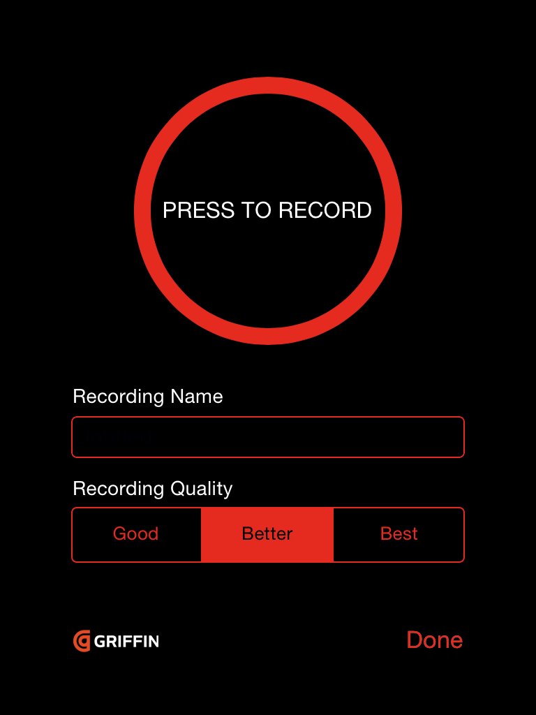 iTalk (located on home screen): iTalk is a simple audio recording interface. Choose the recording quality that you desire (the higher the quality, the bigger the file), name your recording, and press the big red record button. To get your recording file off the device, you may use DiskAid (see above for more), or you may email files up to 2MB in size. To email files larger than 2MB, use iTalkSync (download here). Please note, it’s best to use DiskAid to transfer files rather than emailing them to save on limited data usage.