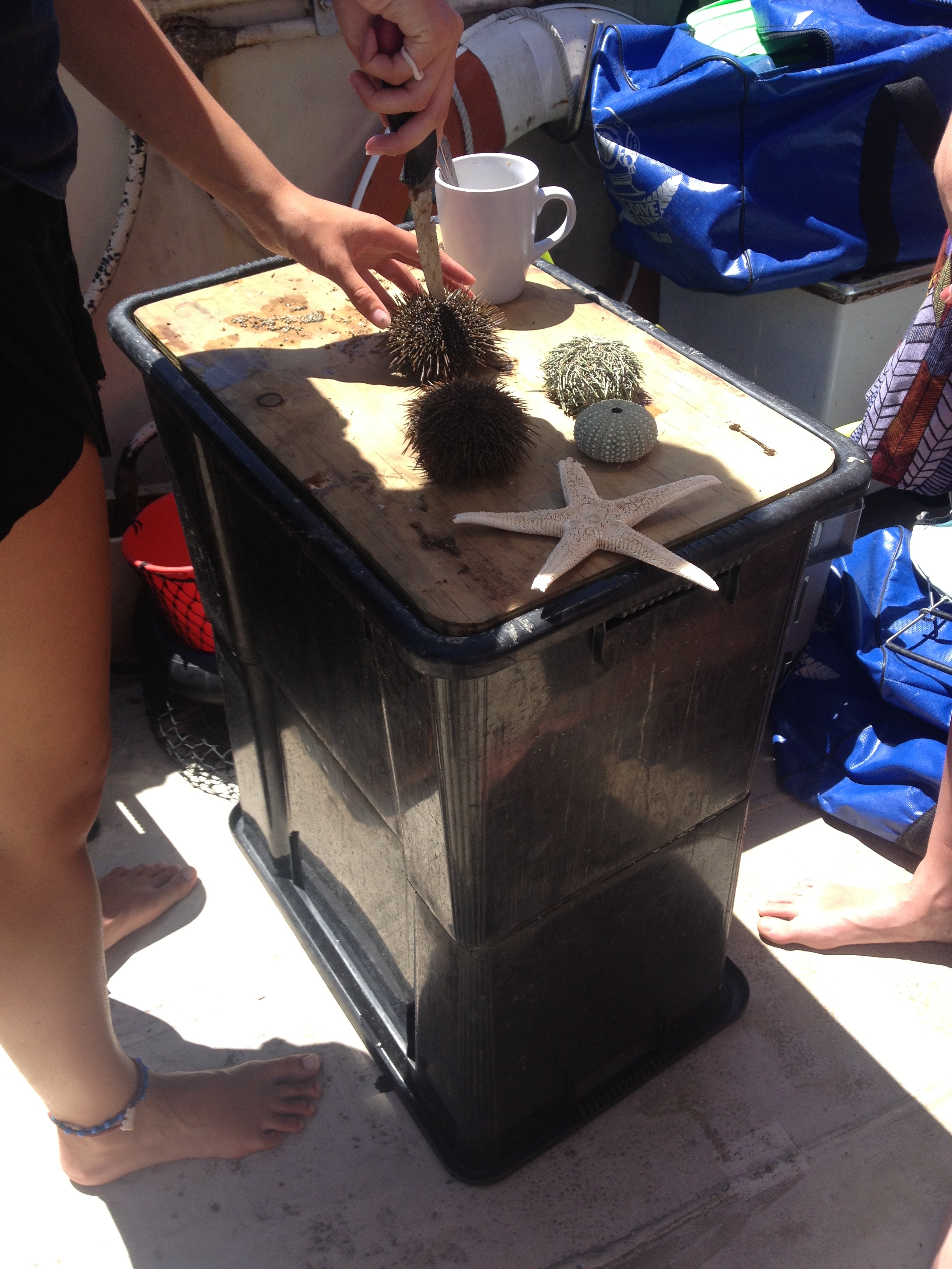 While exploring the wonderful ocean life, we also got the chance to go snorkeling! On the first day of snorkeling I struggled to get the hang of it- but got it all worked out. The second day of snorkeling was much more successful. Combining both days, I saw sea urchins, some schools of fish, snappers, leather jacket fish, and sting rays! I even tasted a sea urchin’s raw egg sac for the first time. It was bitter, slimy, and only a one time thing.