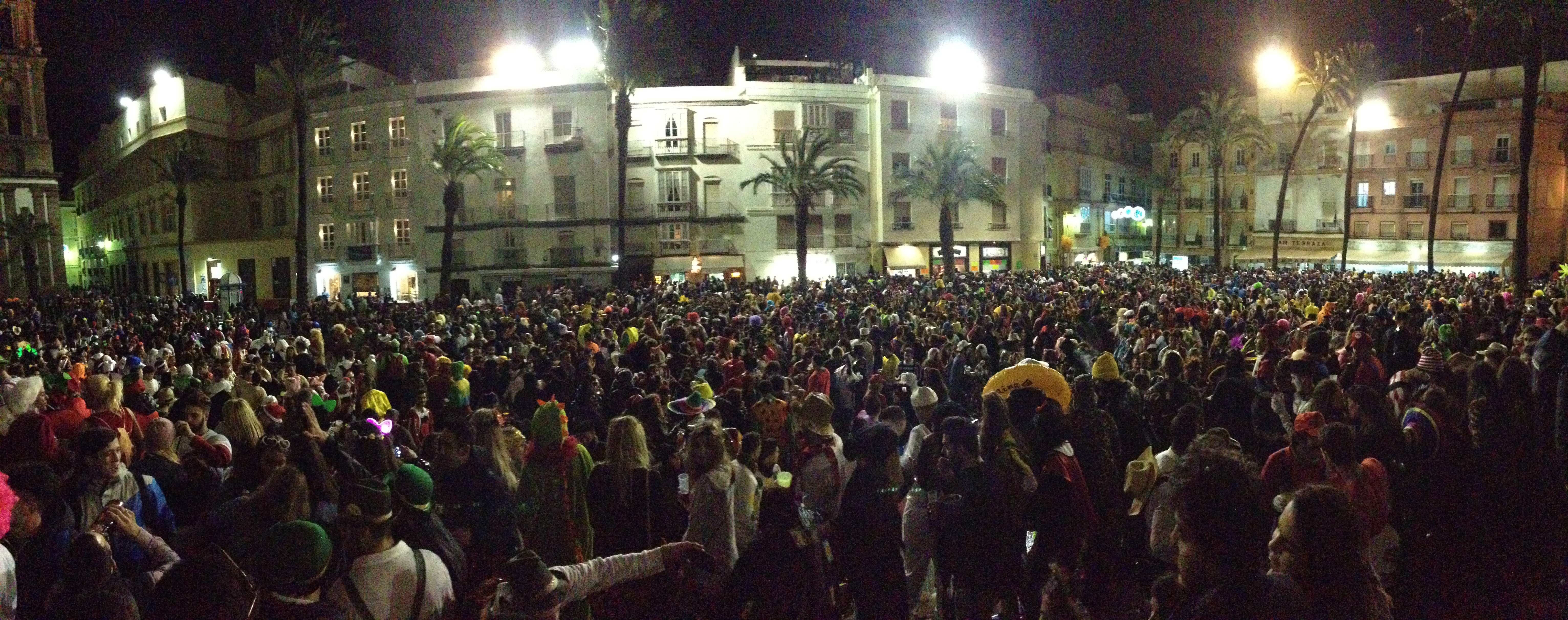 I was aware of Carnaval when I arrived in Spain–references to the famous event are all over Spanish TV and in newspapers. Carnaval is an event that occurs during February around the world, although the traditions at each event vary somewhat. Spain’s Carnaval festival is two weekend of dances and musical performances that offer commentaries on Spanish politics and society; chiringotas are a satirical performance group, while las comparsas are their more serious counterpart. Cádiz, the oldest city in Spain, is the host of the third largest Carnaval celebration in the world, after Brazil and Trinidad. I knew I’d need a costume and, according to my host mom, a sandwich dinner and a pair of comfortable shoes.