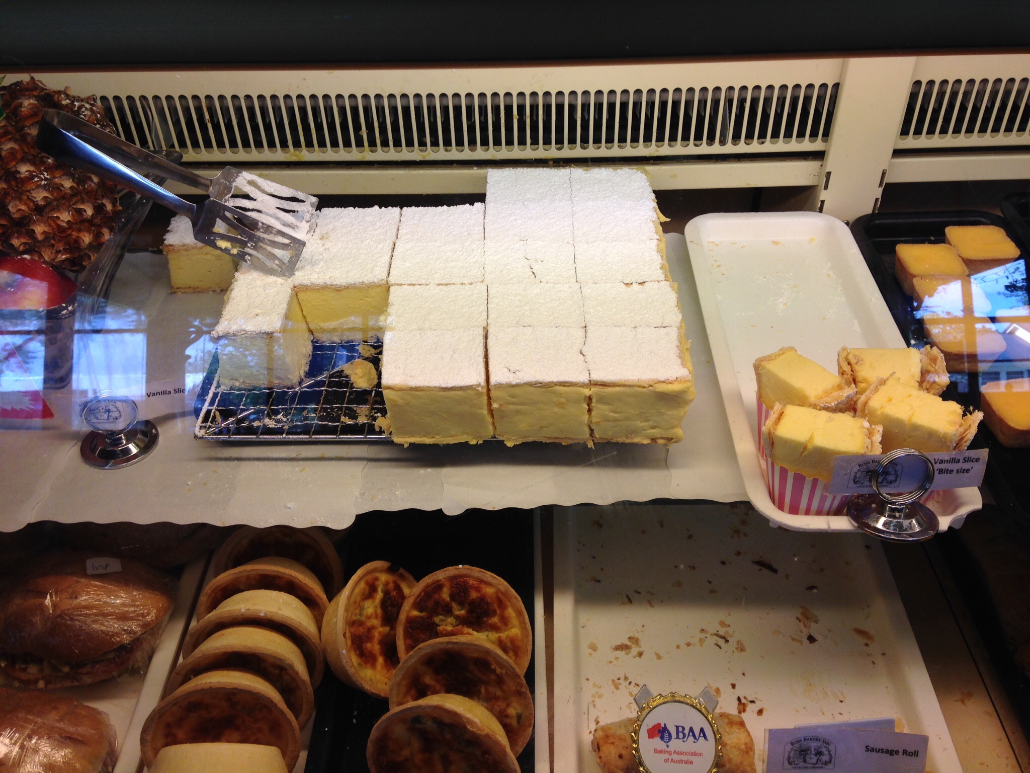 One of the things we love about Portland is the food culture, and as a result we’ve been very interested in the similarities and differences between Australian and U.S. approaches to food throughout our stay. In many ways, Australia and the United States have strongly overlapping food cultures. Familiar meats, vegetables, and fruits abound. But there are some interesting differences. Some of them are minor: cooked tomatoes with breakfast, as in England. Not as much pizza but much more banana bread. Menus are much more meat-oriented than in Portland; steaks and burgers are everywhere, and meat just tastes meatier. There has not been as much seafood as I had expected from a country whose population largely hugs the coast, except for fish and chips (thanks again to England). Beetroot (beets, to us) and pumpkins are important vegetables. More tropical fruits (heaps of passion fruit and locally-grown bananas at farmers markets). Ice cream often ends up on top of breakfast foods like pancakes and waffles. Beer in Australia is mostly average compared to Portland microbrews, but nearly every wine I’ve tried has been good and not very expensive.