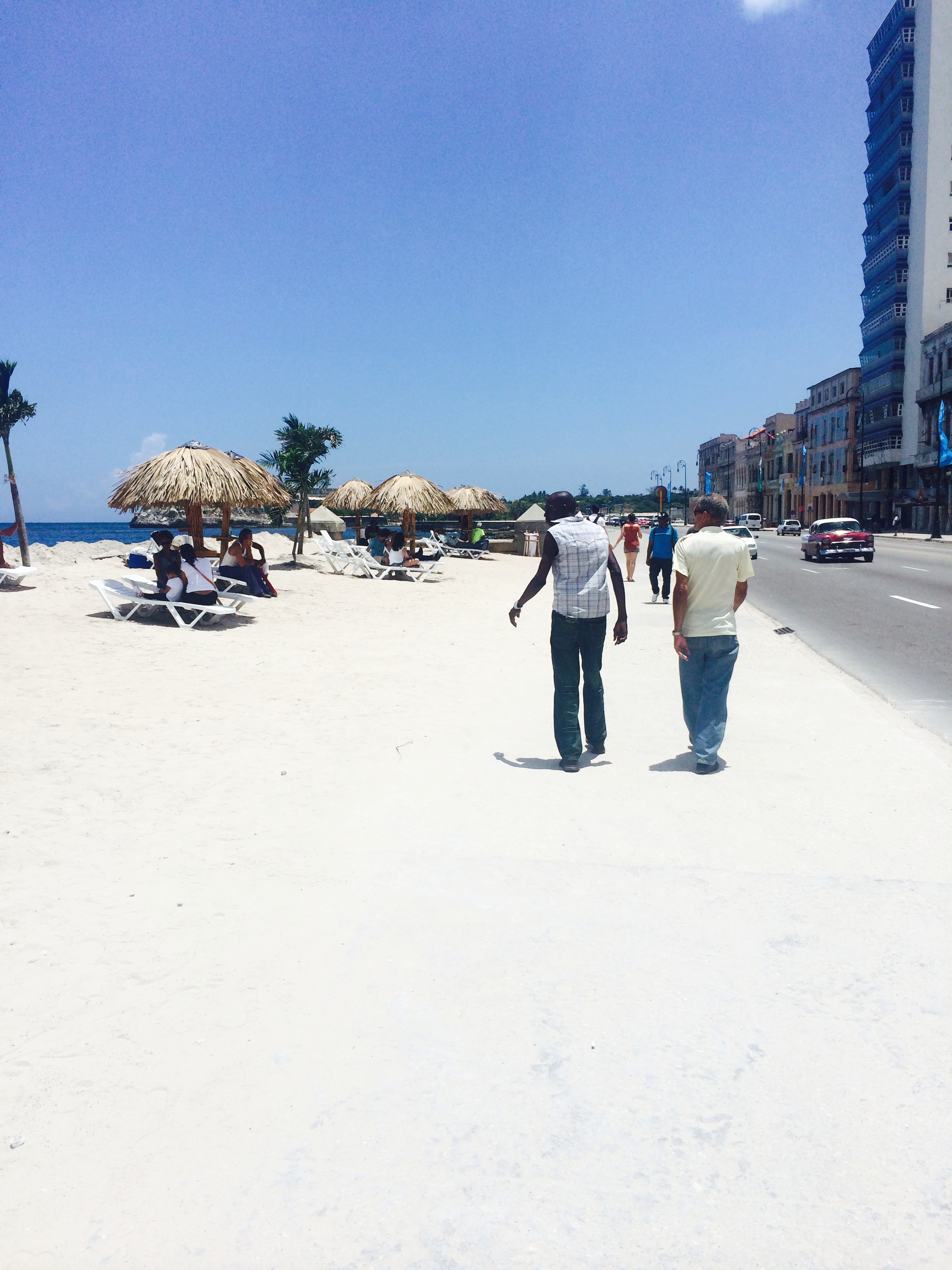 They start just after the United States Interests Section, since one is not allowed to congregate along this part of the Malecon—You must keep moving and, by the way, you may not walk on the interests section’s side of the block.