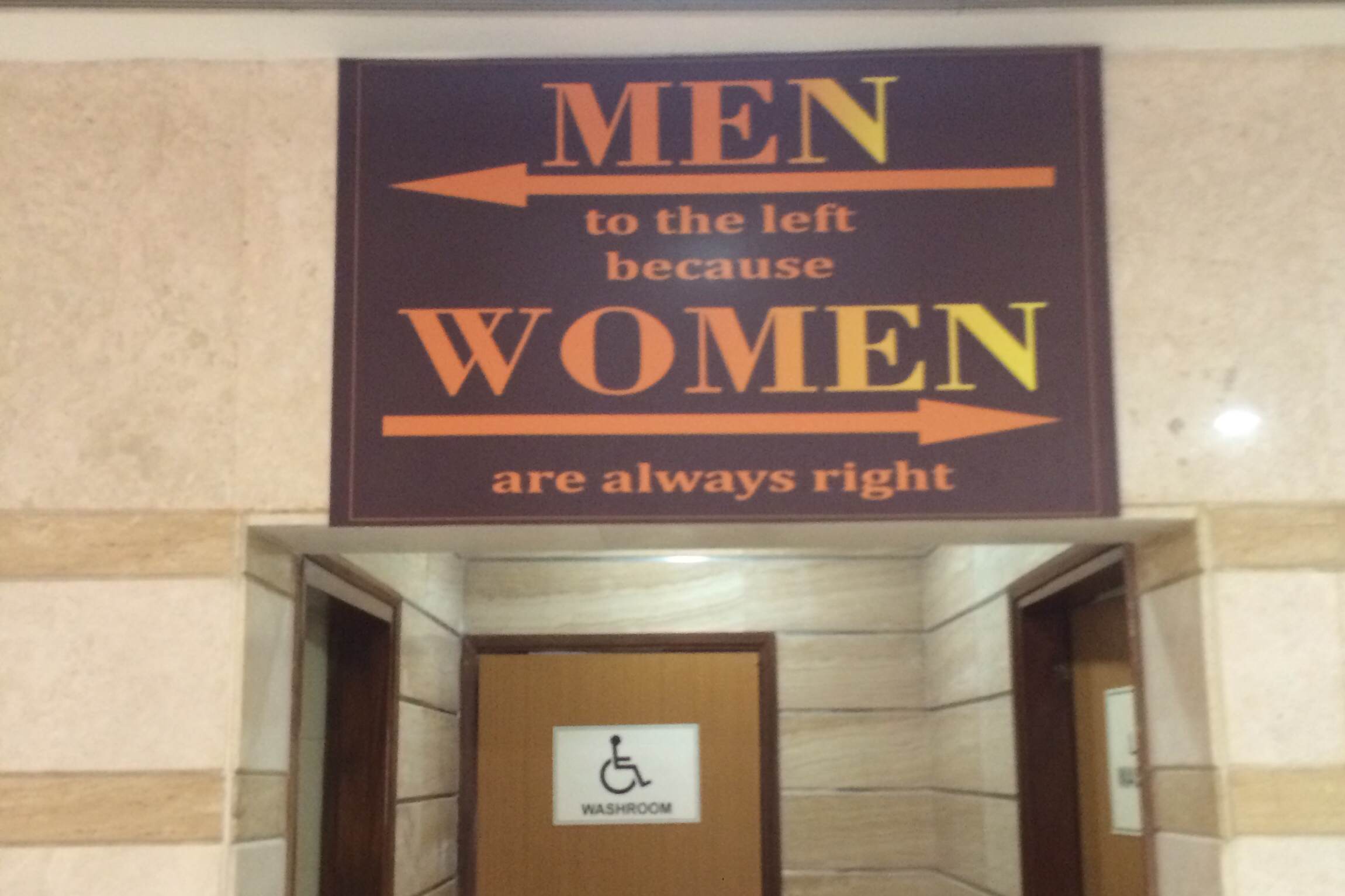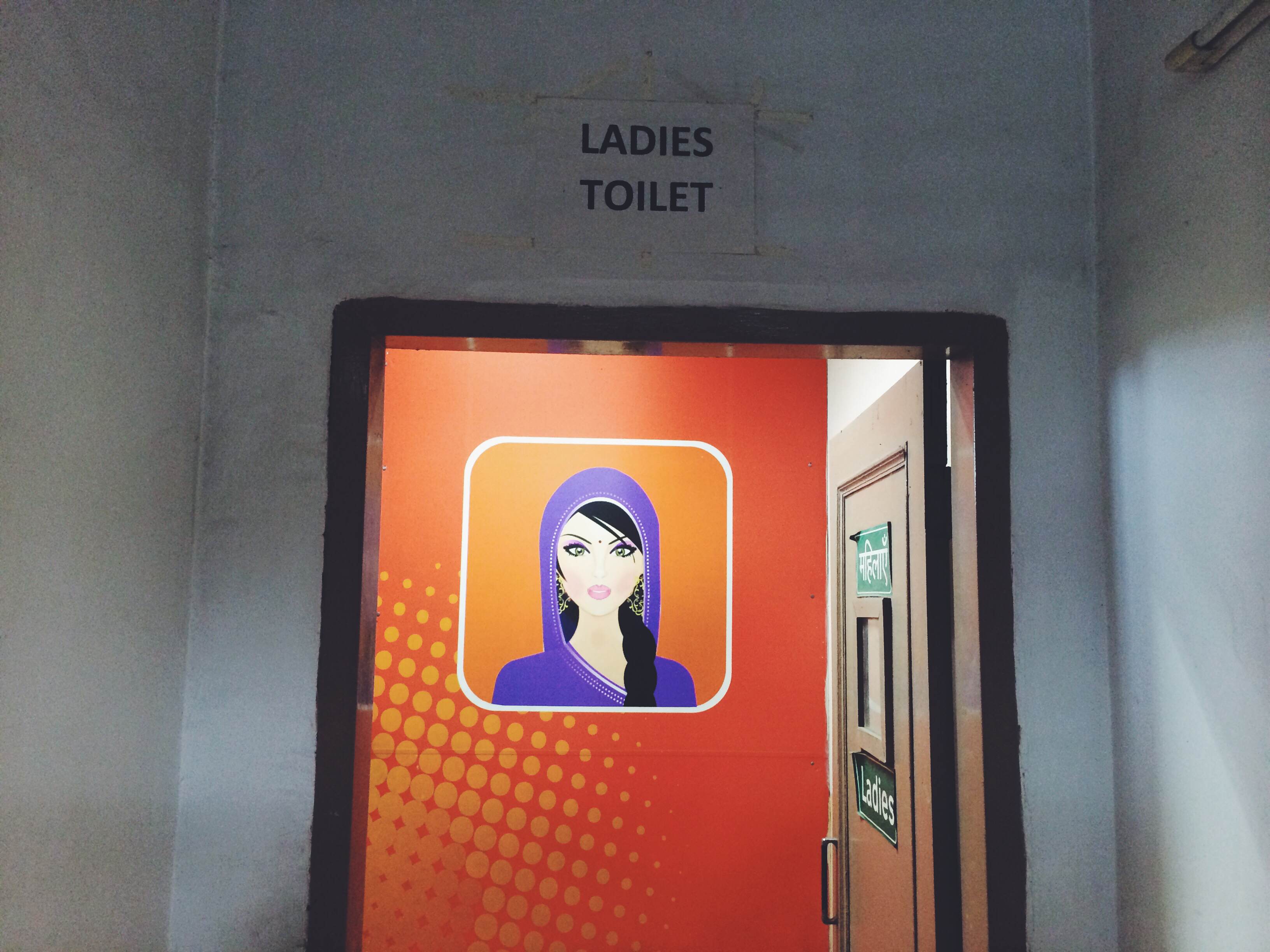 During my time I have been fascinated by the bathrooms. When we find a space where there are women’s bathrooms are available, the female identified participants of the program happily line up and use the facilities. Immediately I noticed how each bathroom we visited had different interpretations of what a female symbol was. As someone who studies how language and symbols inform culture and identity I have been deeply intrigued by the various symbols associated with “ladies rooms” as they are called here. The many diverse symbols that we have been exposed to reveal ideas and themes about social expectations about dress and beauty. Some also are meant to play with ideas of gender. But what the symbols all have in common is that they interact with the parts of our brain that are hard wired to signify gender: we know what symbols ultimately transfer to each respective gender. I will leave you readers with some photos of the ladies rooms I have come across in my travels. The last two are examples of public bathrooms in Delhi, males to the left, and the one female public restroom I found to the right. Feel free to comment with questions and/or thoughts so we can pursue this conversation further.