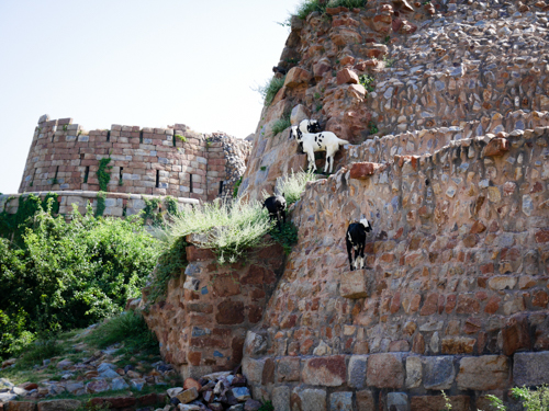 If you couldn’t tell by the name, this is another site associated with Tughlaq, the same Mughal ruler who built Firuz Shah Kotla. Tughluqabad is 14th century Mughal stronghold that overlooks modern Delhi from its position atop the tallest of the hills that encircle the modern city on three sides. It was incredible how the grandeur of the fort and palace complex was still so palpable even though only the skeleton of the ruins remain, and it was fun to get a little hike in despite the fact that the temperature hovered around 100° and there wasn’t a tree or any other source of shade in sight. The position of the complex high up on the hill gives an unobstructed view of the modern city (smog included).