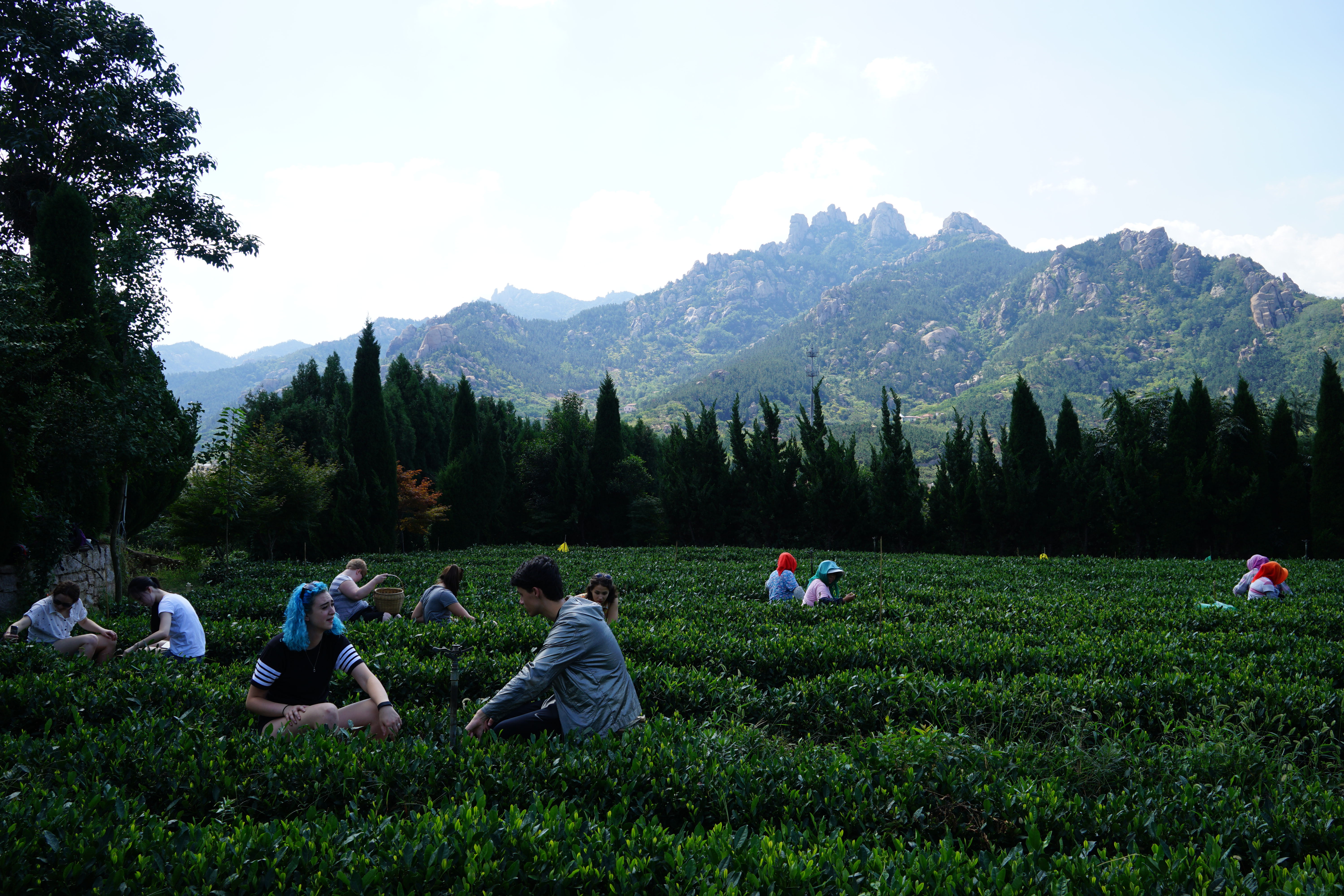 The majority of our trip to Qingdao was dedicated to tea. During the six days we were there, our group was able to see how tea is harvested and processed, along with learning a little bit about the Chinese tea ceremony. Professor Zhang was able to get in touch with a prominent tea company in Shandong province to give us a first hand look into tea. On our first day we went to the company’s tea museum to learn a bit about the history of tea. As I said earlier, it is impossible to separate tea from China. The two have had a deeply intertwined history that really spurred China’s international trade and development. After lunch of the first day, we headed to a lecture by the company’s lead tea researcher about the benefits of drinking tea. Our second morning was spent in the Laoshan district of Qingdao near the mountains. We were able to see first-hand how tea leaves are harvested. A group of very dedicated women spend roughly 11 hours a day hand-picking the leaves from the tea bushes. This task is especially hard if the quality of the tea is higher as only the smallest and freshest leaves can be used. The sheer quantity of fresh leaves needed to create one small package of tea was truly astounding. To see this crucial step in the process definitely has made me think a lot about the cost of consumption since we left. That afternoon we went to the processing area of the company where we watched the leaves go through the elaborate drying and oxidizing process needed to become ready for sale. It was especially interesting to learn that the only difference between the six types of tea (green, red, black, white, yellow, and oolong), is the way in which the original tea leaves are oxidized.