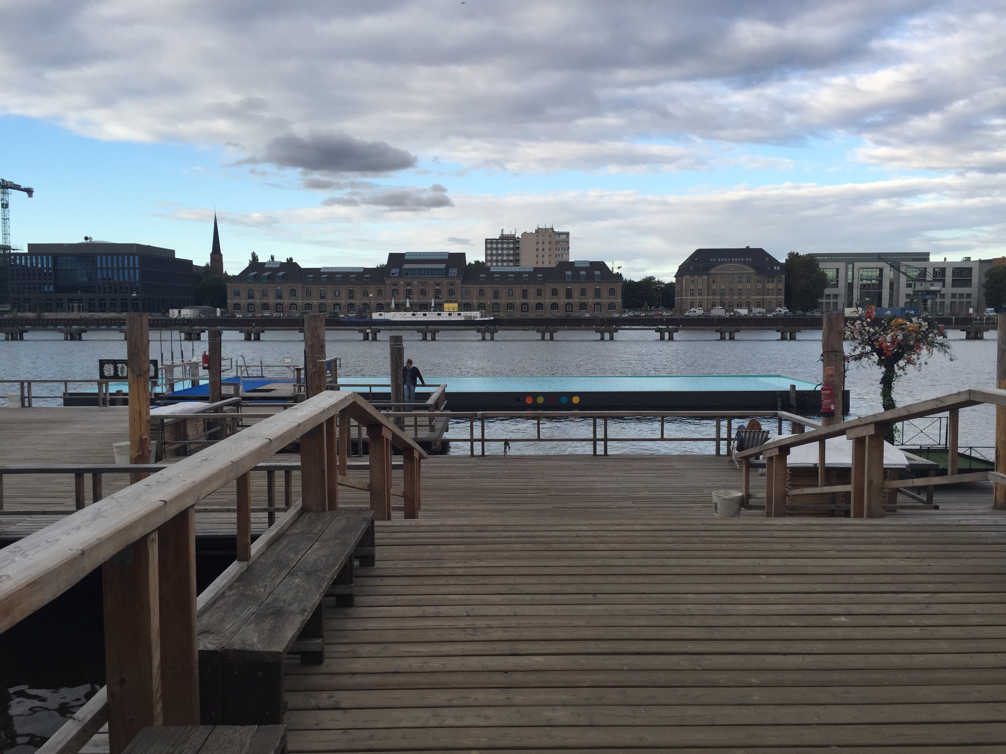 In Berlin along with longer pool lengths there is also a difference in swim etiquette. Etiquette as “a code of behavior that delineates expectations for social behavior according to contemporary conventional norms within a society, social class, or group.”(Wiki) In this case it refers to a set of unspoken rules that define how you swim during lap swim. There is a black line the bottom of the pool in a swim lane that divides it into two sides and a “T” at the end of the line that is to alert the swimmer that the wall is about a half of a yard away. In both the US and Berlin it is common courtesy to swim on the right side of the lane in which ever direction you are going and slide over to the left side as you get with in a meter or two of the wall in order to turn with out causing a collision. Were things differ dramatically between the US and Berlin is their rules involving passing someone who is going slower then you. In the US you tap some ones toes and when they get to the wall they will move over and let you pass if the lane is crowded, or if it is less crowded then one can go around the person on the left side then merge back in, in front of the person without running in to someone going the opposite direction. It is also polite to let some one go ahead of you if you are stopped at the wall and someone is trying to turn that is faster then you. In Berlin toe taping is not well tolerated, from my experiences, so if you wish to pass some one you must try to go around them which can be a tricky feat if the lane has more than three swimmer in it. Also it is not common courtesy to let some one go before you if you are stopped at the wall and you just go when you feel it is good to go. Some pools even lack lanes completely and lap swimming becomes a free for all