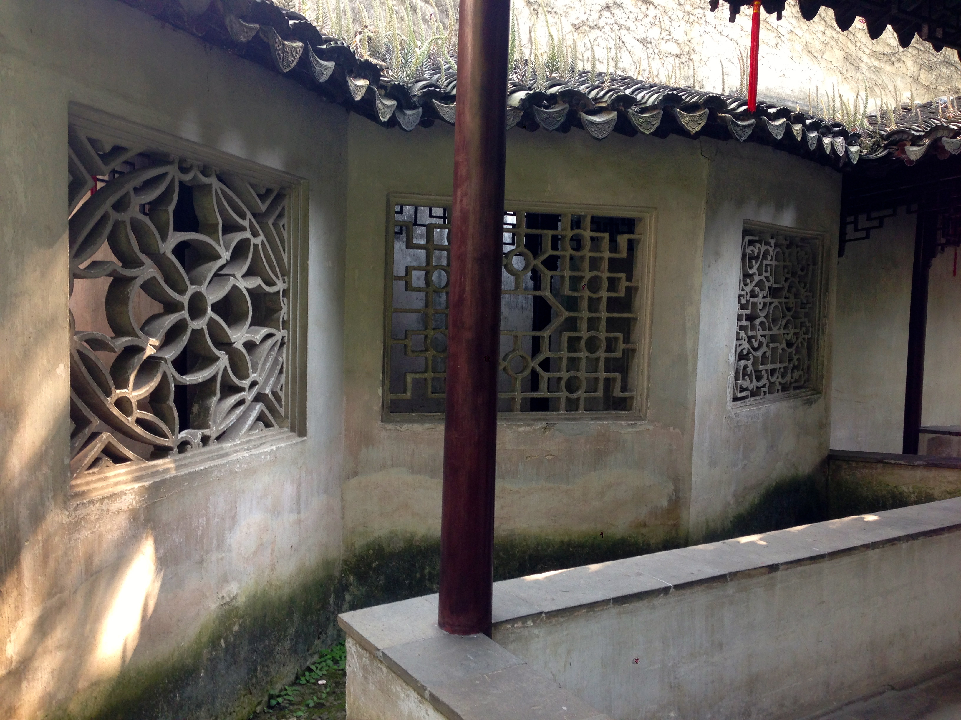While walking through the first of the gardens I visited, I was quickly drawn back in time to Carol’s informative tour so many months ago. She explained to us then that in a Chinese garden every window design is unique, so that no single design is ever repeated throughout any one individual garden. Additionally, these windows and rounded entryways can be used to frame scenes for a viewer. I attempted to replicate this technique through some of my photographs. I was also blown away by the nature of the pathways, with their innovative designs that seemed to change not only between gardens, but also from section to section of one individual garden.