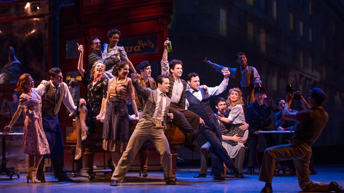 Christopher Wheeldon has created one of the most ballet centric musicals ever on Broadway. In his Broadway director-choreographer debut, Mr. Wheeldon has joined the ranks of other prestigious director-choreographers such as Jerome Robbins and Bob Fosse. His choreography is front and center through the entire show, especially in the development of the romance between Jerry Mulligan and Lise Dassin. Each time that these two characters meet and grow closer to each other, their dance becomes more and more intricate and intimate, eventually culminating in their final pas de deux during the 14-minute ballet at the end of the show. This pas de deux is graceful, poised, technically flawless, and is a style of dance that is so rarely seen on Broadway. Mr. Wheeldon’s choreography is heavily focused on ballet, but there are jazzier moments that are much closer to the Broadway style, even containing nods to other movies starring Gene Kelly (such as Singin’ in the Rain). These moments bring a fresh and youthful aspect to the extremely joyful moments of the show, such as “I’ve Got Beginner’s Luck”.