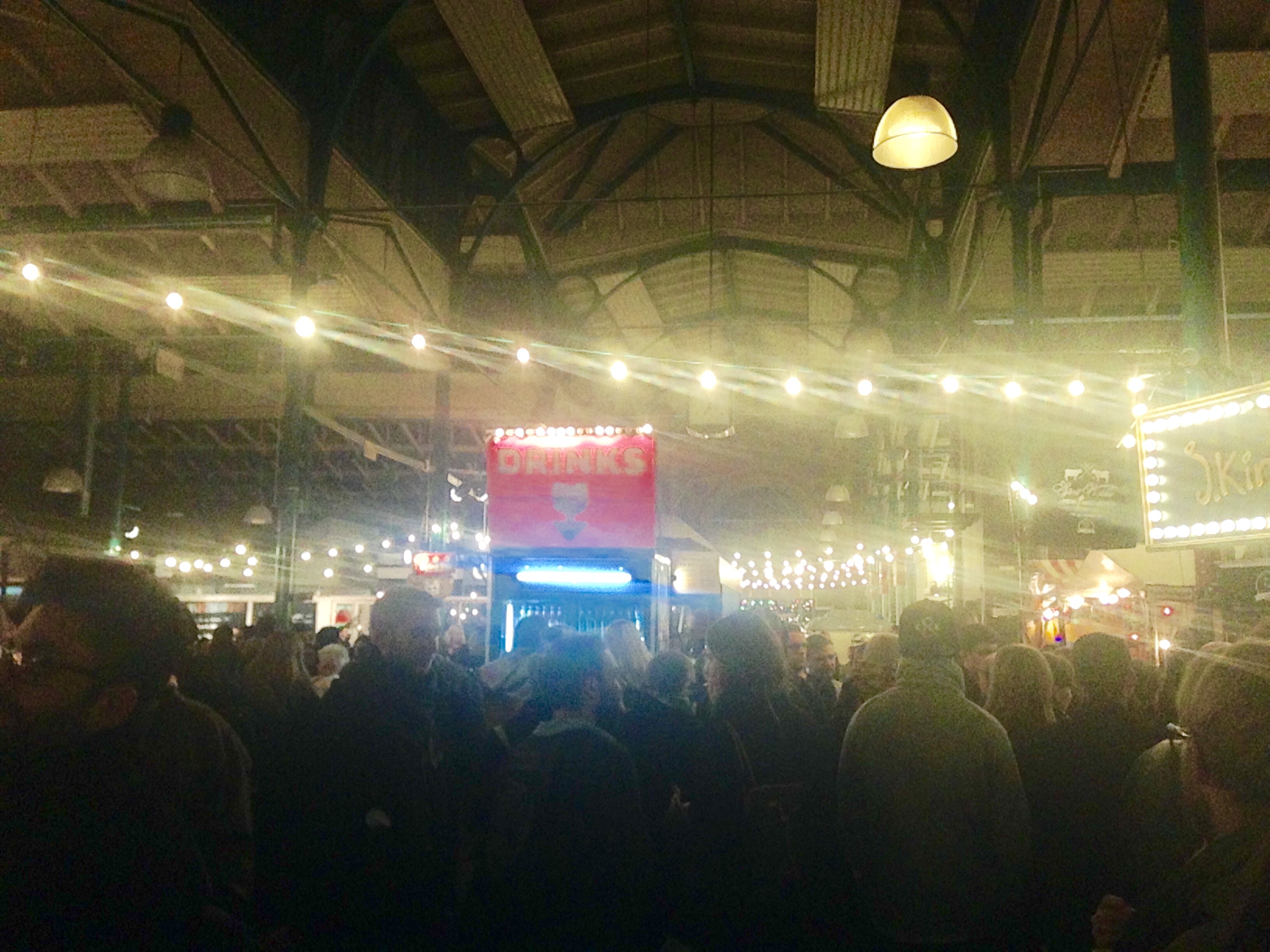 Last Thursday, I got to experience a really cool, Portland-like part of Berlin- Street Food Thursday in the neighborhood for Kreuzberg! Every Thursday night from 5-10 pm, dozens of pop-up food carts are set up in Markethalle Neun, selling everything from British Meat Pies to Korean dumplings. There was even a food cart with spaghetti-flavored ice cream. Sadly, I didn’t try it, but it’s on the list for this week! I did, however, eat a sandwich-sized sushi roll stuffed with shredded beef (better than it sounds) and a waffle coated in cinnamon and sugar.