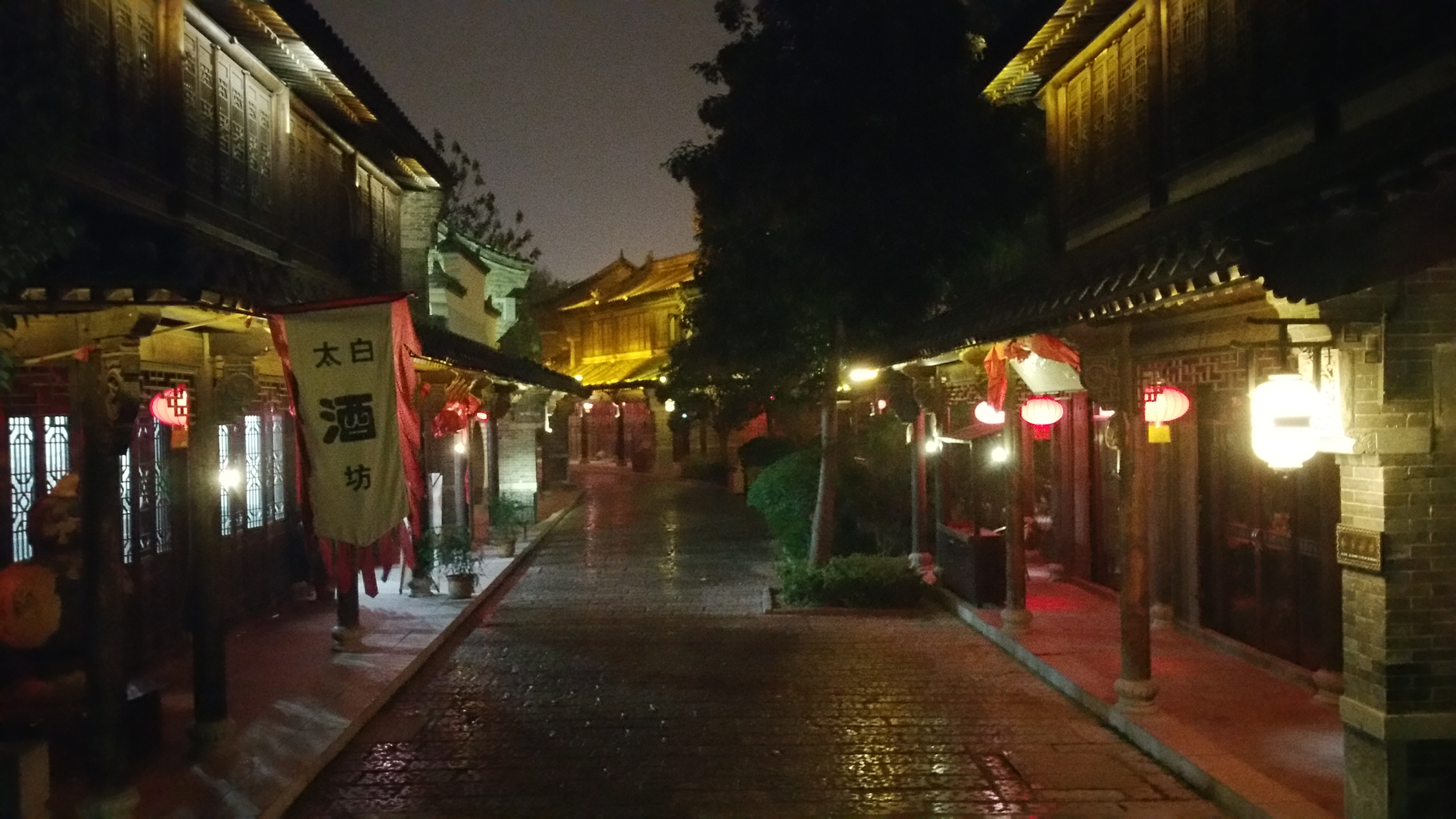 Tai’erzhuang by night is equally beautiful. Colorful paper lanterns and strings of electric colored lights illuminate the streets. As we visited in the off-season, (though I’m guessing the mild rain was also a factor) light-pollution from shops was limited, which was pretty fantastic – even though it makes me curious as to what this town would feel like at full-bustle.