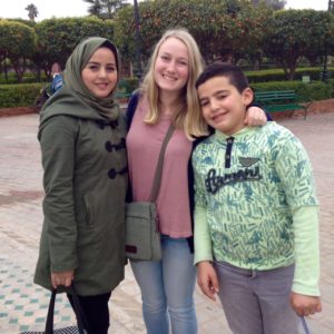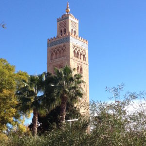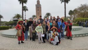 Last weekend, our group spent Saturday morning with the Director of CLC, as well as other Moroccan friends and homestay family members, on a visit to a few historically relevant sites in and near the old city, the Medina. Our first stop was the Kutubiyya, a 12th-century mosque whose minaret might look familiar to you. It was the architectural prototype for La Giralda in Sevilla, Spain. We learned that its name (includes the root for “book”) comes from the fact that when established, it attracted bookmakers and booksellers who clustered all around its base and in its gardens. When in the area, we still hear the daily call to prayer fives times a day coming from the iconic Moorish minaret.