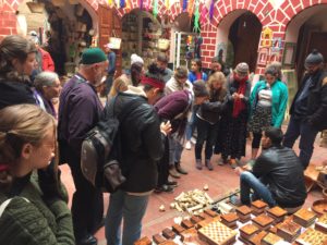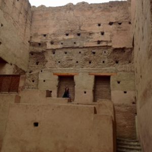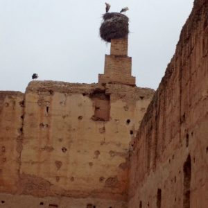 Our next stop was to the Qas’r al-Badi, or the Badi Palace, a 16th century archeological site that held special attraction for Emily H.-R., our group’s future archeologist. Although it was long ago looted and no longer features walls of gold and precious stones, we were still able to walk the grounds, see outstanding mosaic work and get a stork’s-eye view of the city. Our feathered friends were nesting in the many ramparts and looking down on us.