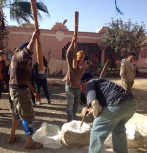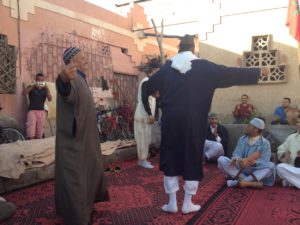 One weekend we went with Dr. Aissa Derhem, President of Dar Si Hmad, to visit the inland Souss Valley city of Taroudannt and learned much about the role that city had played in Moroccan history. It is called “Little Marrakech” or the “Grandmother of Marrakech” and is located almost entirely within 6-7 kilometers of ancient ramparts. During the visit we were very fortunate to visit a zawiya and learn more about Sufism as well.