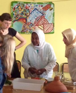 In Agadir, a city along Morocco’s southern Atlantic coast, in the foothills of the Anti-Atlas Mountains, we settled into coursework and life in a different region of Morocco. The dedicated individuals of the NGO, Dar Si Hmad (DSH) offered us a course entitled Development and Sustainability in Morocco, taught by Dr. Jamila Bargach, Director of DSH. We also gained insights into the other contributions they make to the local, regional and world communities. For more information, see: http://darsihmad.org/en/