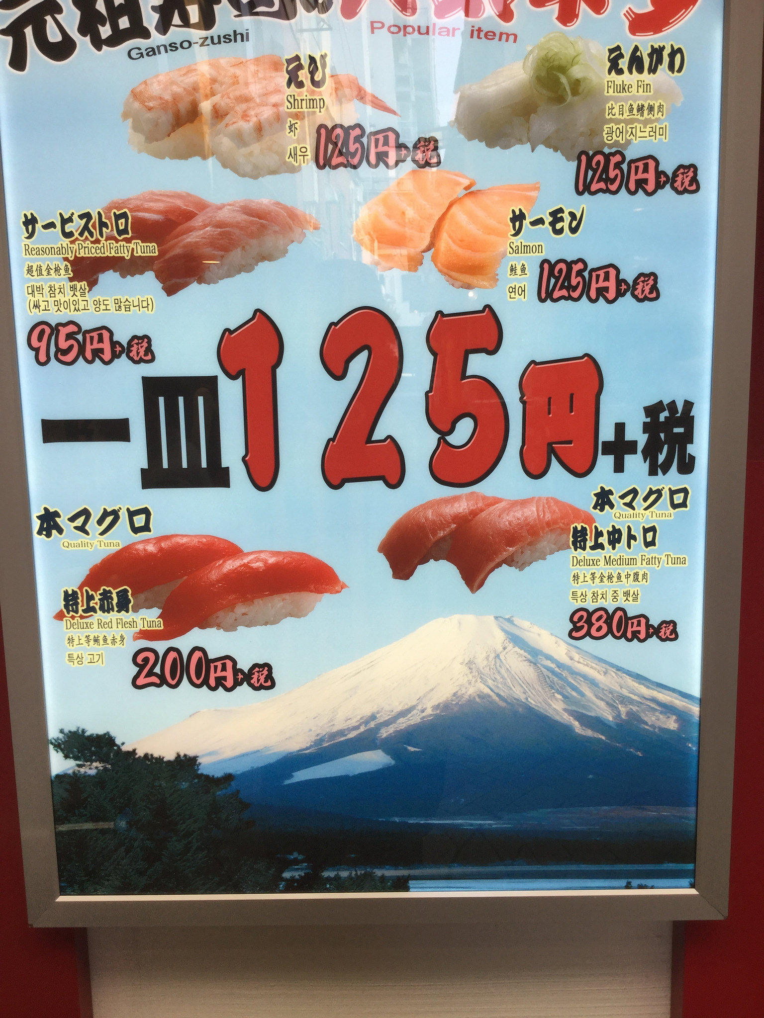 Fig. 4. Fuji on a sushi restaurant window menu in Asakusa