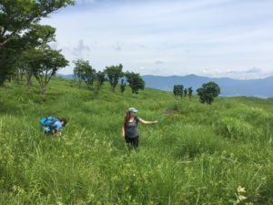 Watanabe Michito, a butterfly researcher from the Mount Fuji Nature Conservation Center, has concerns about the decreasing maintenance of these satoyama lands. Using aerial photo mapping from the 1950s to present, we compared the differences between current and past grasslands in the Nojirisōgen, Nashigahara and Motosukōgen areas with him. By the present day, we saw that as people stopped maintaining the lands, mass forest succession inevitably took over the grasslands. In the Motosukōgen and Nashigahara, we were able to count more butterfly individuals and species in the zones still maintained by humans. Our observations mirrored Watanabe’s research. He argued that there are more butterfly species and individuals in these well-maintained areas because there is more disturbance which leads to greater plant diversity, including important food sources for different butterflies (July 12, 2017). Going further, he believes that these diverse butterflies populations are good indicators of grassland health and are strongest when human maintenance is consistent (July 12, 2017).