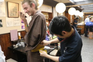 This is me reeling in embarrassment after the belt of my yukata became untied in a restaurant in Kyoto. A kind waiter fixed the belt for me because I had no idea how to.