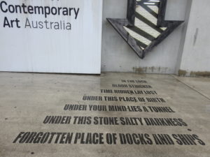 Moving on from the colonial art, we evaluated the history from the Aboriginal perspective. However, to do this we had to leave the ground level floor of the museum and travel down a series of escalators to the bottom floor of the museum. Unlike the highly uniform and stylized works of the colonists, the Aboriginal artwork came from all over the country, and utilized a variety of techniques and materials. There was a combination of ancient and contemporary techniques, as traditional styles were incorporated into the new stories. These artworks told stories of culture, loss, despair, and unity. A large component on Aboriginal culture revolved around connection. While each nation had their own customs and ritual, they were all somehow connected to their land and their ancestors. Despite the invasion and colonization of their land, these cultures and people have endured. The Museum of Contemporary Art offered a similar insight into the struggles faced by past and present Indigenous Australians. One particular art installation, tall man, used four large screens to simultaneously play footage of the 2004 riot on Palm Island. The artist, Vernon Ah Kee, a member of the Kuku Yalandji, Waanji, Yidinji and Gugu Yimithirr peoples, explored the aftermath of a young Aboriginal man’s death with in police custody. After the coroner reported that the man died from internal bleeding, tensions broke between the locals and police. Many of the pieces from both museums reflected the continual struggles and perseverance experienced by the Aboriginal Australians.
